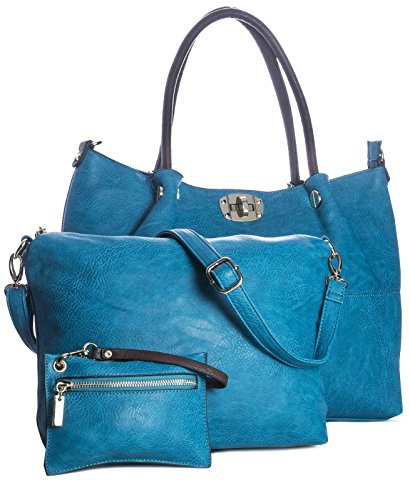 Best Seller! Big Handbag Shop New 3 in 1 Faux Leather Tote Shopper Golden Buckles Shoulder bag (Deep Turquoise) Review