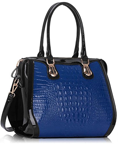 Fashion Only UK offer Ladies Fashion Designer Quality Patent Grab Bags Women's Trendy Elegant Tote Handbag With Polished Metal Decoration CWS00295 CWS00188A (CWS00290-Black/Blue). This awesome product currently limited units, you can buy it now for , You save -